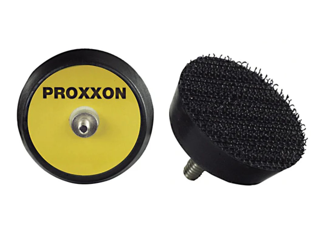 Držiak na leštiace a brúsne kotúče Proxxon 50 mm so zapínaním na suchý zips. Na použitie s brúsnymi a leštiacimi kotúčmi, kotúčmi s korundovým lemovaním a brúsnym rúnom.