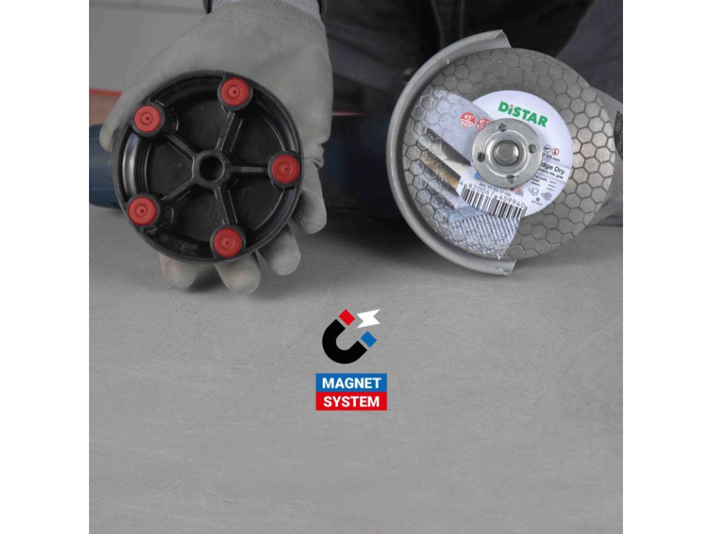 Vďaka držiaku Click-Lock Uni je možné brúsny a leštiaci kotúč nainštalovať priamo na rezný kotúč. A to bez toho, aby ste rezný kotúč museli odstrániť z uhlovej brúsky. Vďaka držiaku Click-Lock Uni môžete okamžite prejsť z rezania na brúsenie a späť. Jediné čo musíte spraviť je znížiť otáčky uhlovej brúsky z maxima na minimum (max 3500 ot/min.).