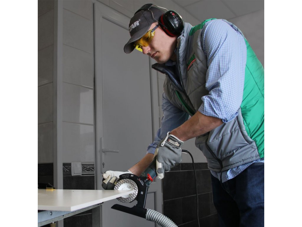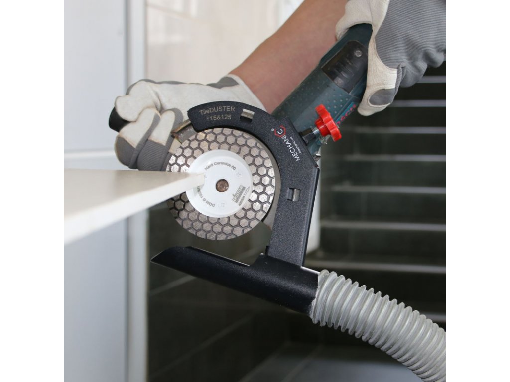 Nadstavec na odsávanie prachu Mechanic TileDUSTER 115/125 sa používa pri prebrúsení hrán keramických dlaždíc, porcelánovej kameniny, žuly a mramoru, gresu bez prachu. Nadstavec sa ľahko namontuje na štandardný kryt uhlovej brúsky a bezpečne sa upevní skrutkou. Je ľahký, takže práca bude ľahká a pohodlná. Otvorený dizajn poskytuje plnú viditeľnosť a kontrolu nad brúsnou oblasťou. Pripevnenie je univerzálne. Vhodné pre akýkoľvek model uhlových brúsok 115, 125 mm bez ohľadu na výrobcu.