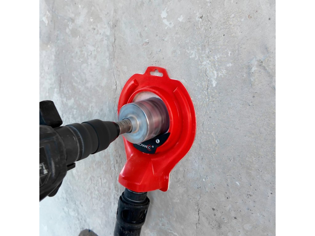 Odsávač prachu je vyrobený z odolného plastu a má dvojité tesnenie pre lepšie vytvorenie vákua na povrchoch stavebných materiálov (betónová stena, tehlové murivo, dlaždice). Zariadenie umožňuje použitie jadrových vrtákov s priemerom do 82 mm.